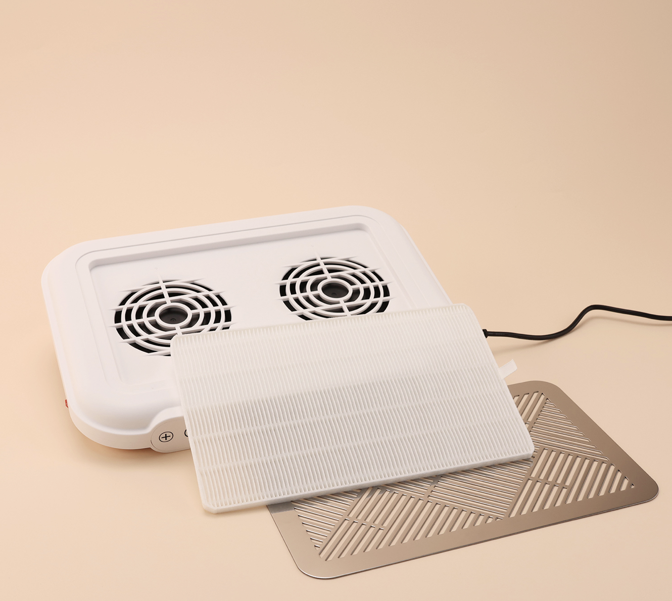Premium pöytäimuri kynsipöydälle on tehokas pölynpoistolaite kynsistudioihin ja kauneushoitoloihin. Laite imee kynsiviilauksessa syntyvän pölyn tehokkaasti suoraan suodattimeen, mikä auttaa pitämään työpisteen puhtaana ja parantaa työskentelymukavuutta.